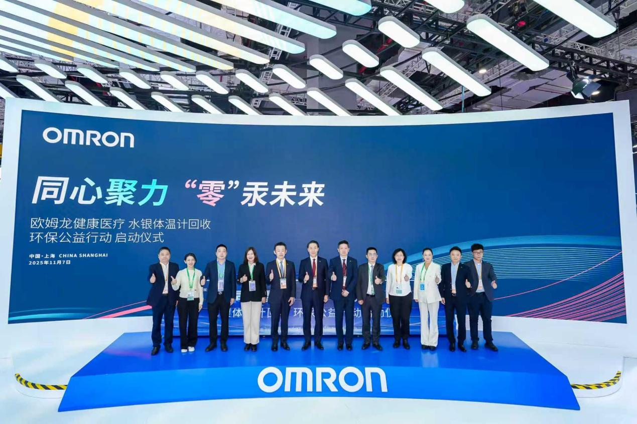 2025年11月7日,上海——在第八届中国国际进口博览会这一全球经贸盛会上,欧姆龙健康医疗(中国)有限公司(以下简称“欧姆龙健康医疗”)联合上海第一医药股份有限公司、全亿健康产业集团、健之佳医药连锁集团股份有限公司、安徽国胜大药房有限公司、河北神威大药房连锁有限公司等多家连锁药店伙伴共同启动“同心聚力‘零’汞未来”水银体温计回收环保公益行动。此举旨在主动响应中国无汞化发展政策,通过整合“全国+区域”药店网络,不仅为合作伙伴带来品牌增值与社区服务深化的商业共赢契机,并推动着医疗健康领域向绿色环保转型。